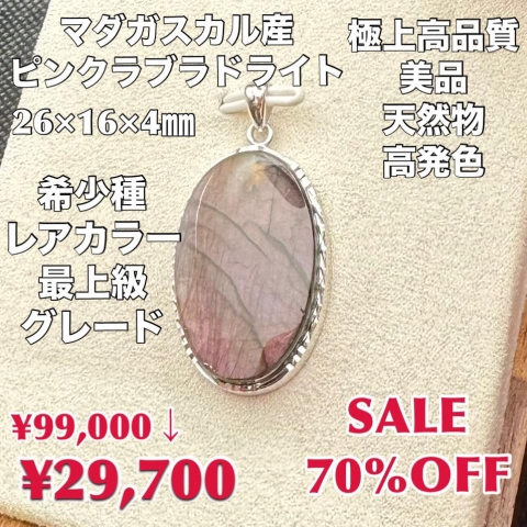 ピンクラブラドライトの極上ハイグレードペンダンの入荷です