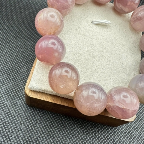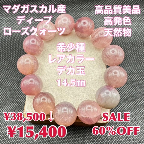 ディープローズクォーツ マダガスカル産 天然物 希少種 高品質美品 高発色 デカ玉 レアブレス