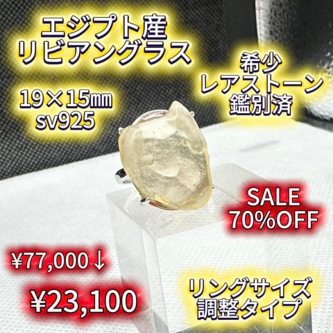 リビアングラス 隕石 エジプト産 鑑別済 希少 リング 大特価 SALE70%OFF
