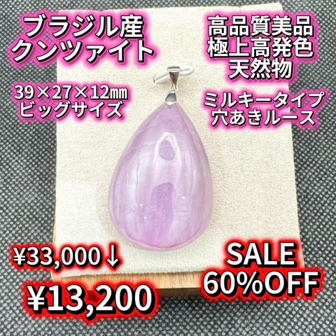 クンツァイト ブラジル産 天然物 高品質美品 極上高発色 ミルキータイプ 穴あきルース ビッグサイズ SALE60%OFF