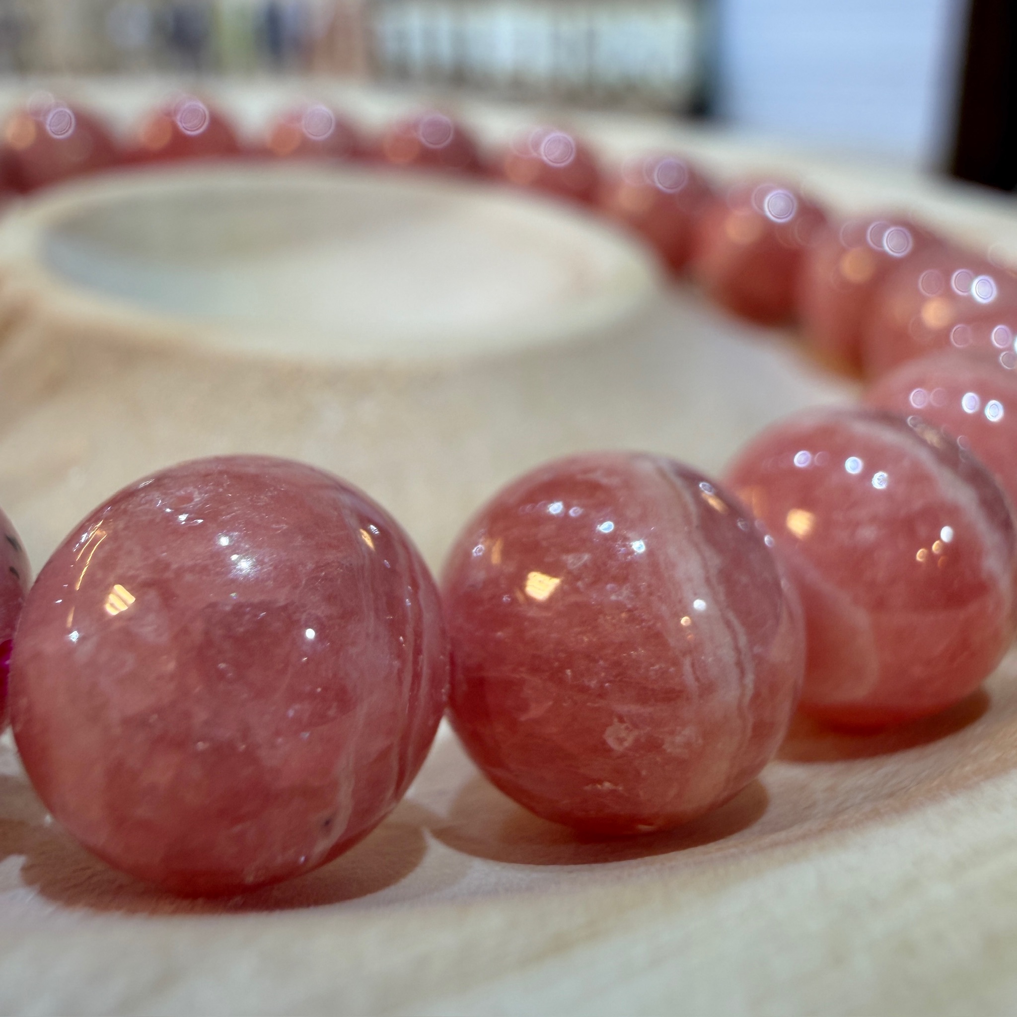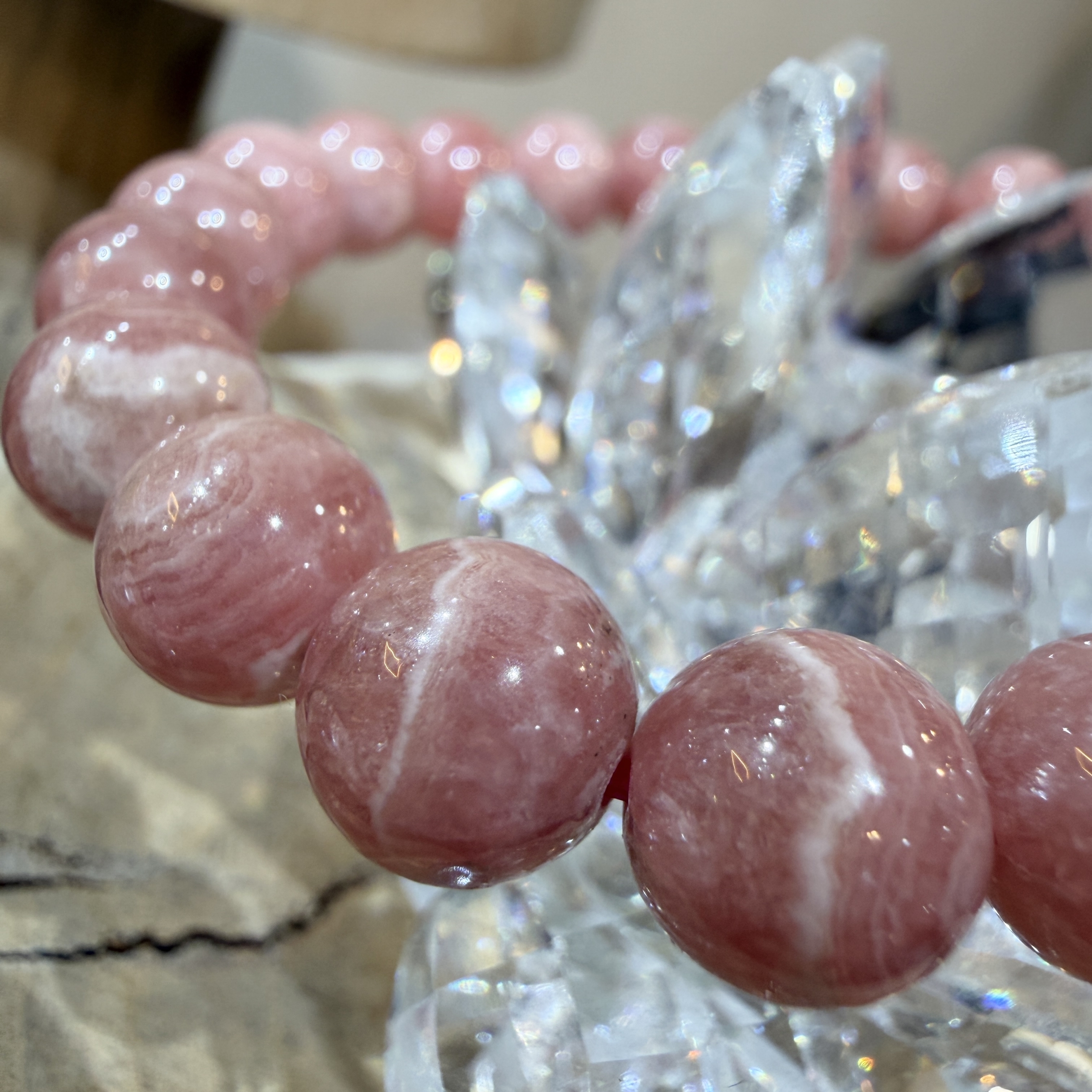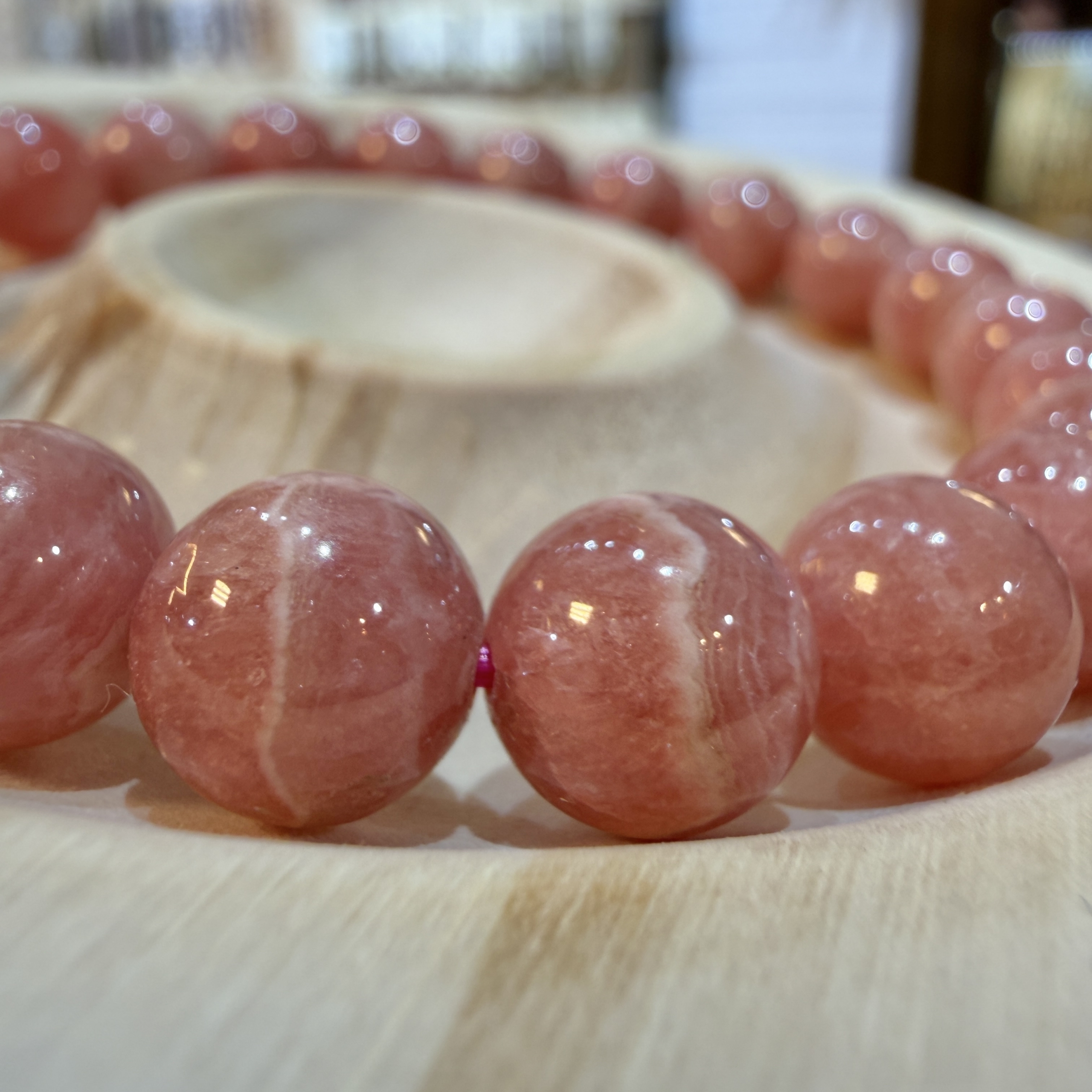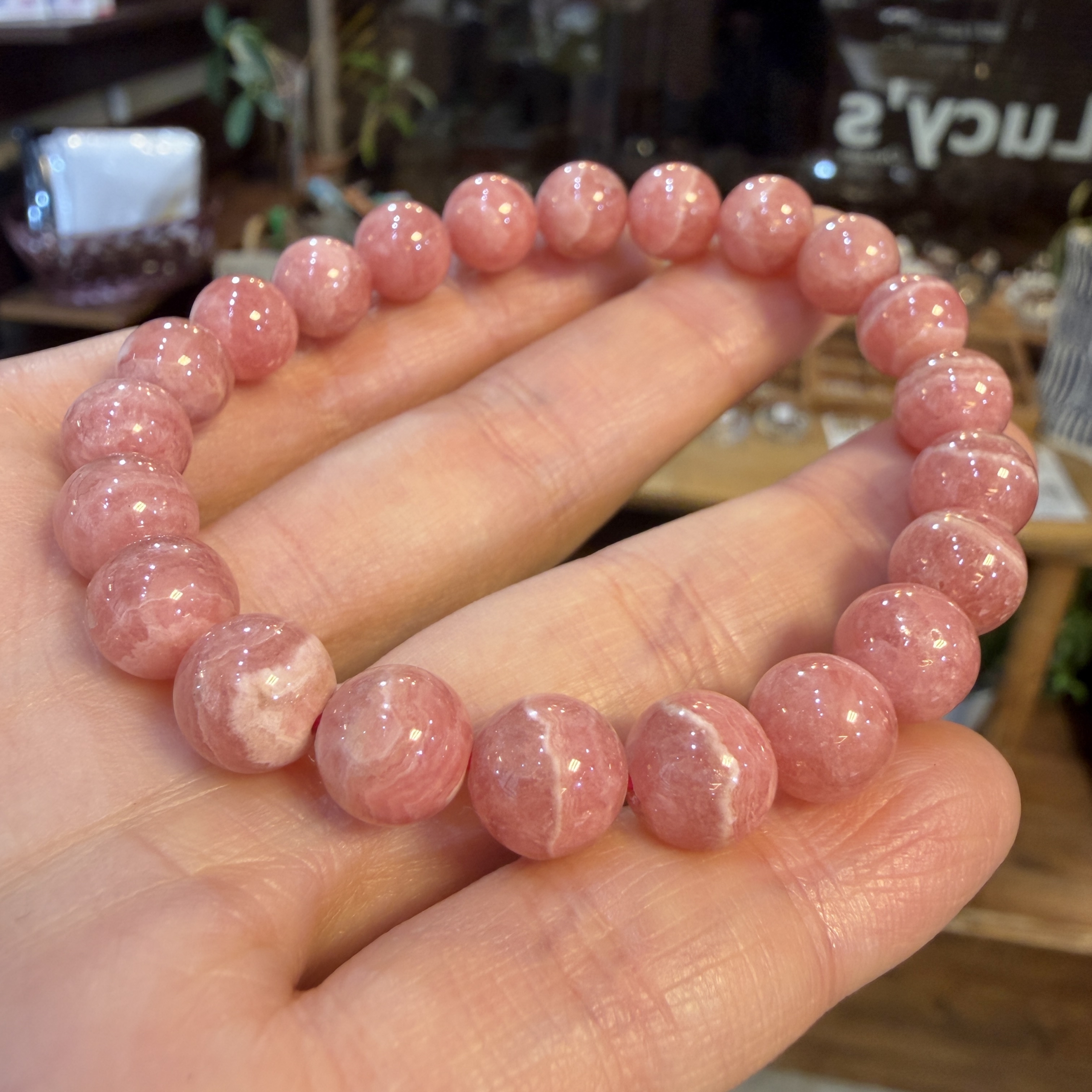 アルゼンチン産インカローズを使用した、8.8mm玉のブレスレット。