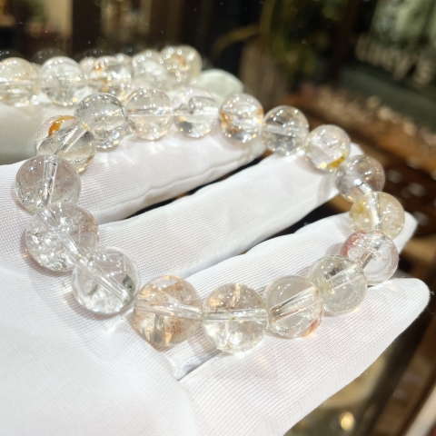【60%OFF】高品質ブラジル産ライモナイトインクォーツ12.5mm/透明感の美しいブレスレット