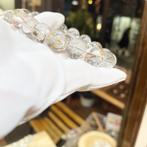 【60%OFF】高品質ブラジル産ライモナイトインクォーツ12.5mm/透明感の美しいブレスレット