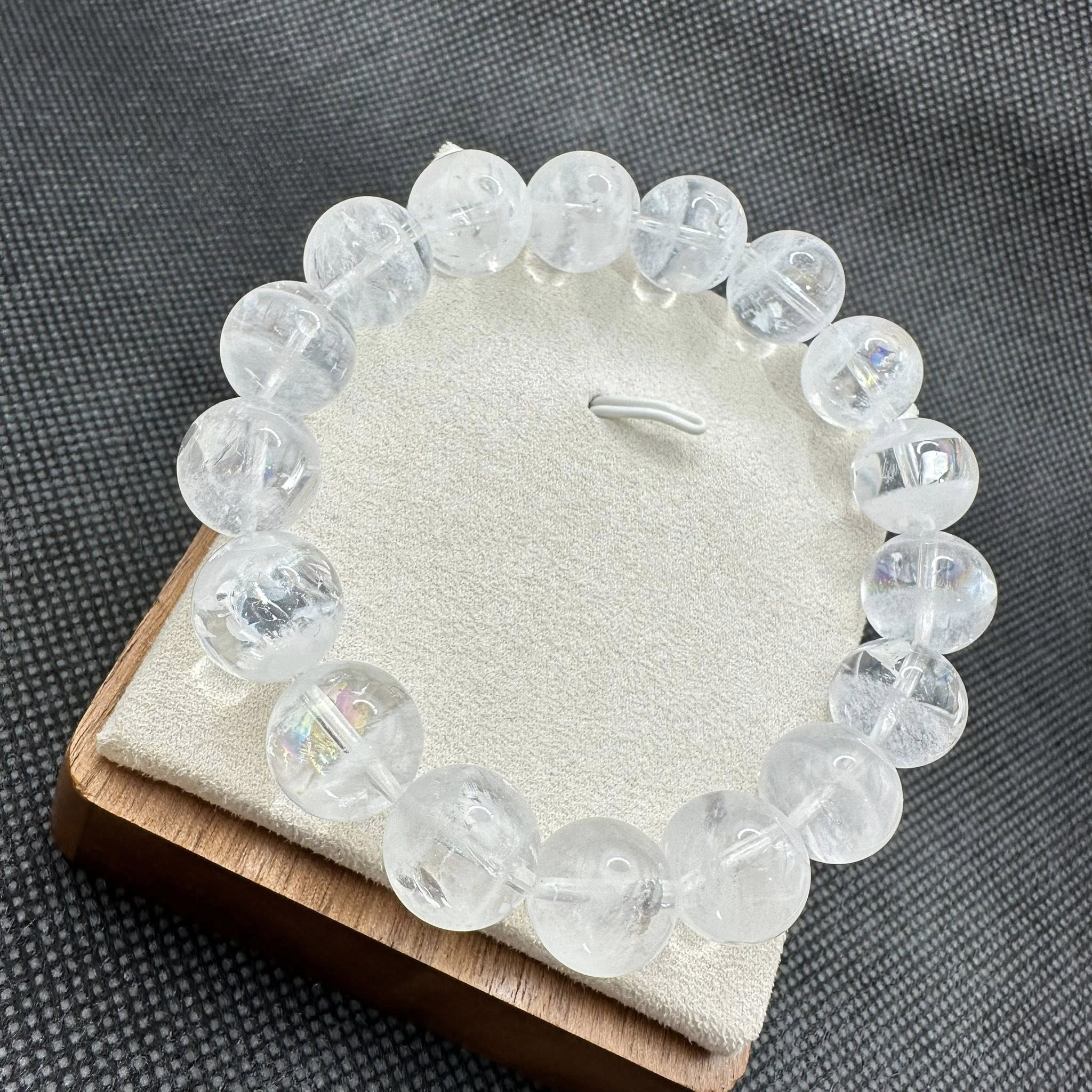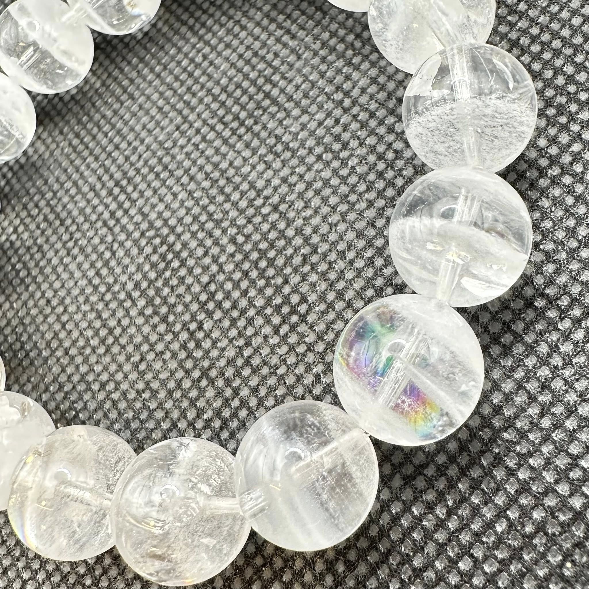 天然の水晶が長い年月をかけて成長していく過程で、他の鉱物(ヘマタイト)が混入し薄い膜状の物ができ、その膜状の物が光や角度により美しく虹色に輝くもののことをアイリスクォーツと呼びます。