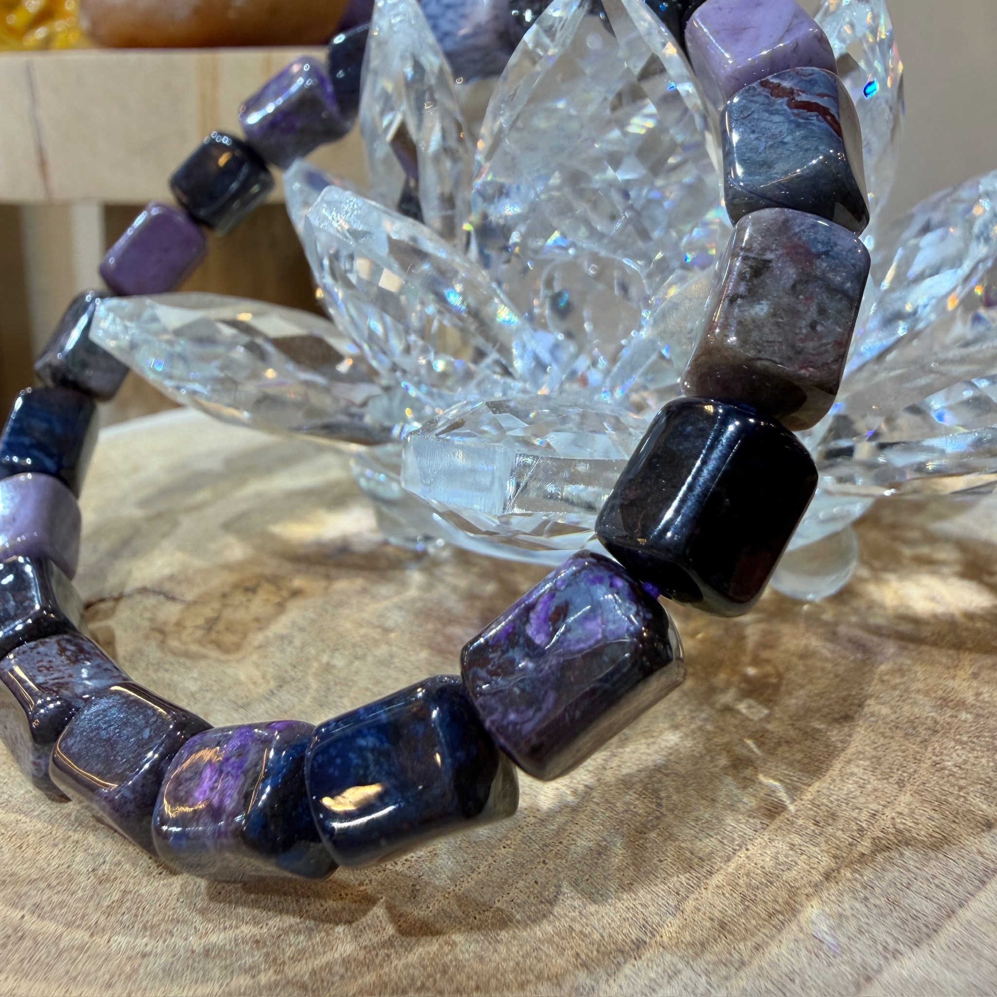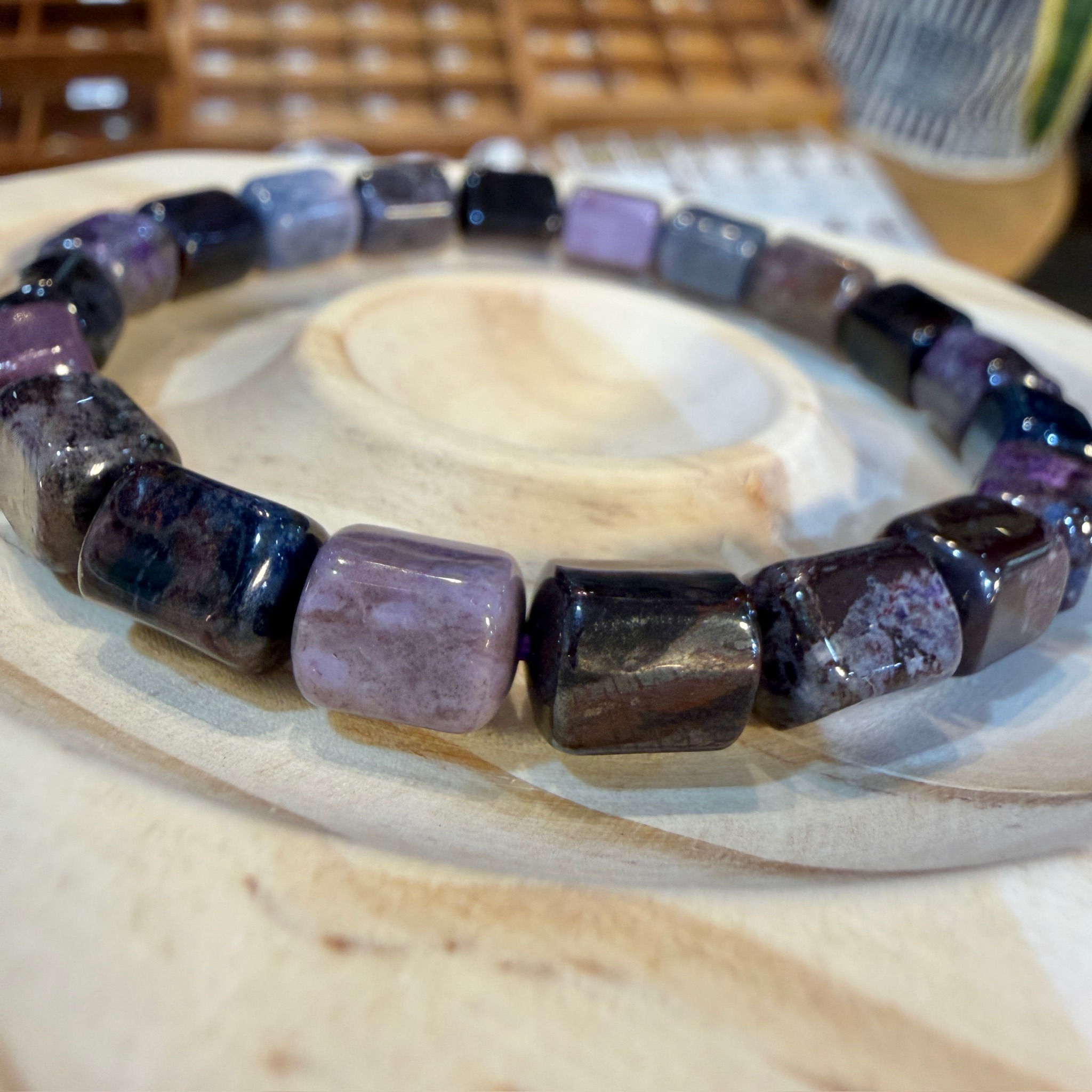 南アフリカ産スギライトを使用した、桶型10mm×6.5mmのブレスレット。