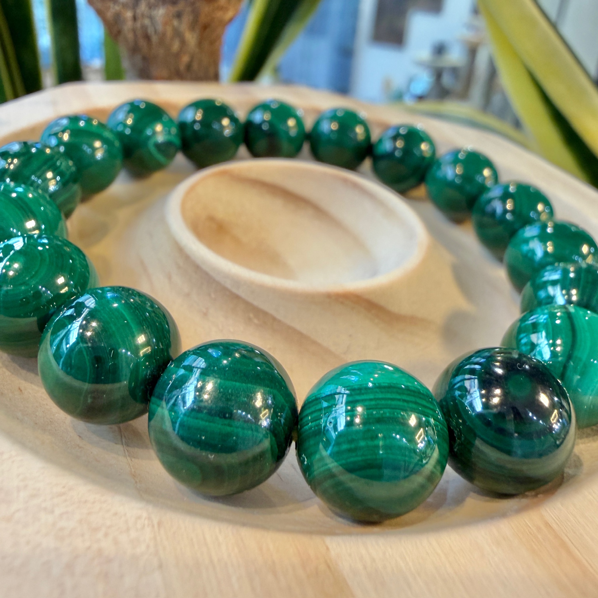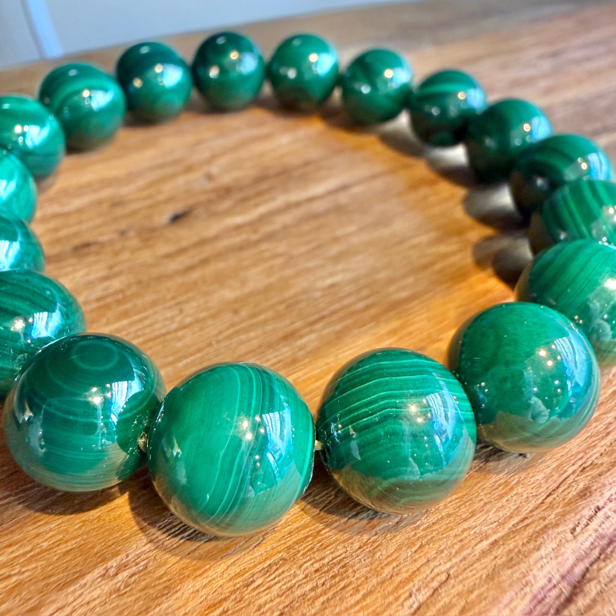 コンゴ民主共和国産マラカイトを使用した、11mm玉のブレスレット。
