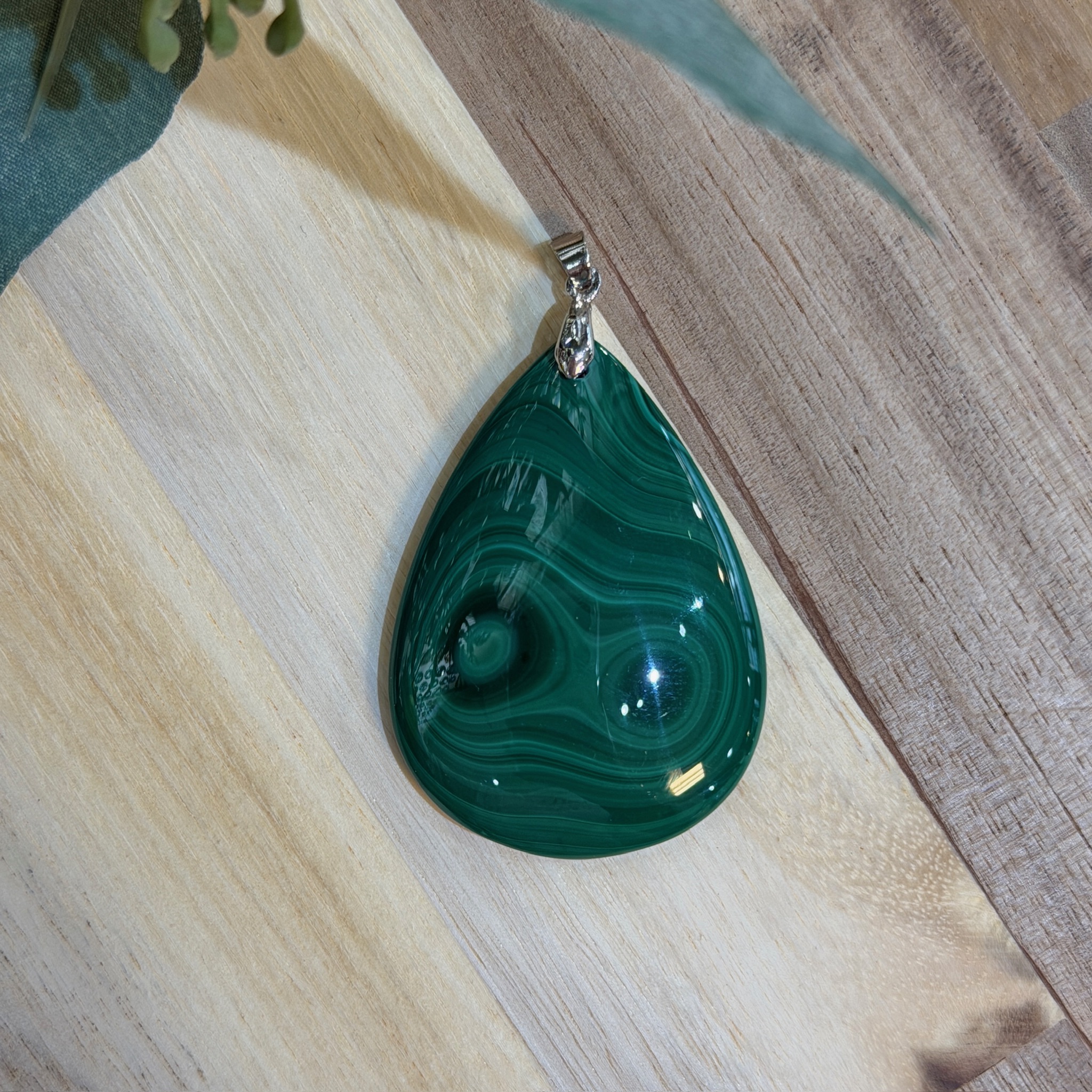 コンゴ民主共和国産マラカイトを使用した、44mm×32mmの存在感あるペンダントトップ。