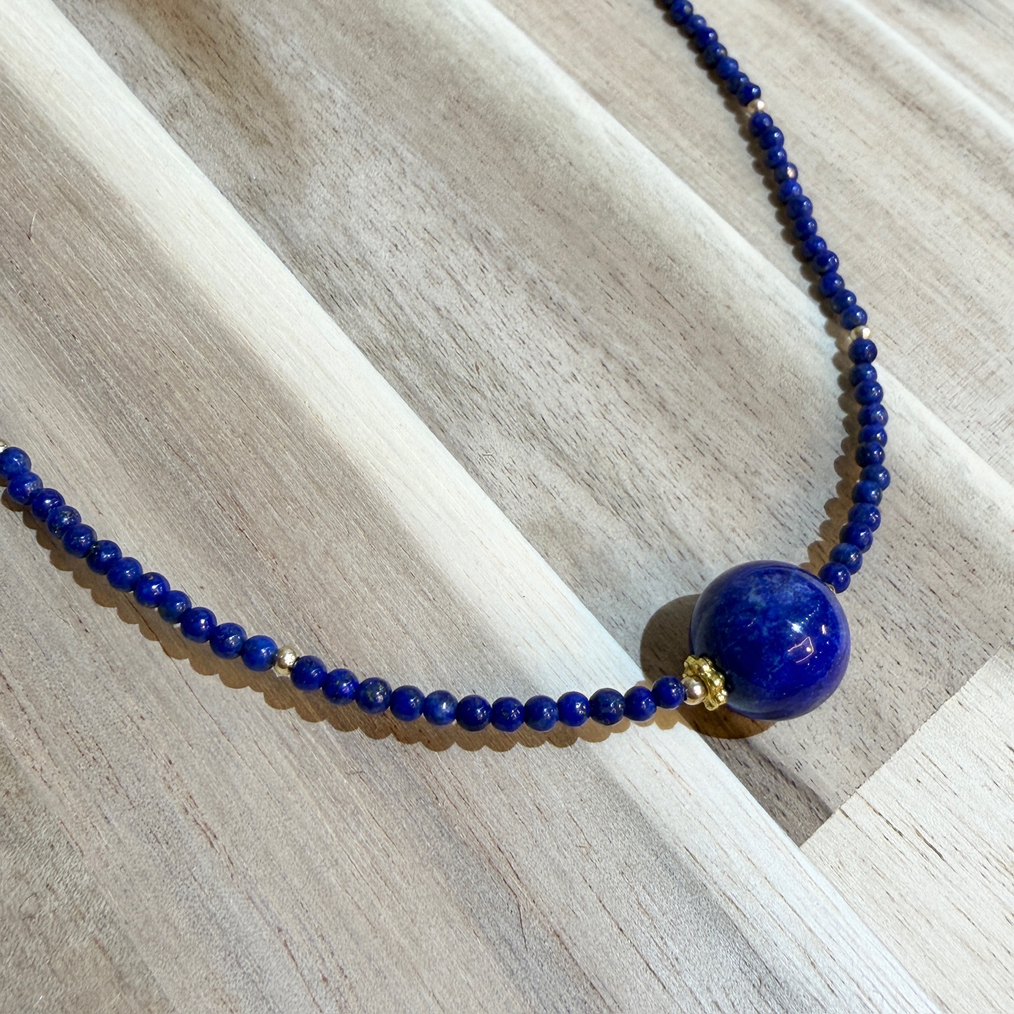 アフガニスタン産ラピスラズリを使用した、繊細で上品なネックレスです。