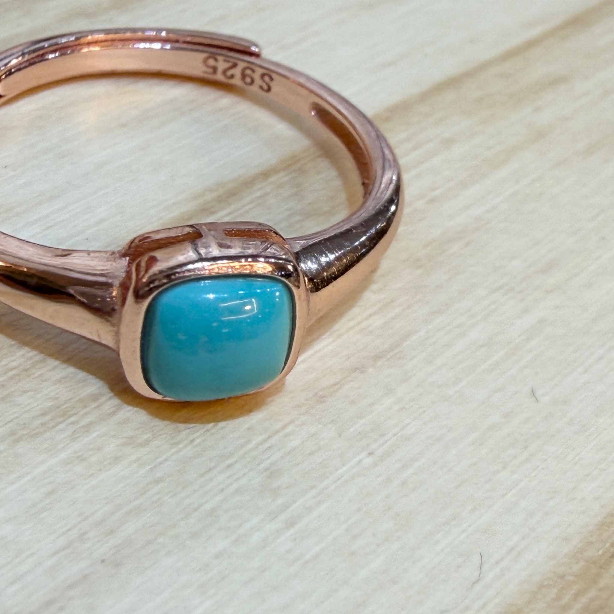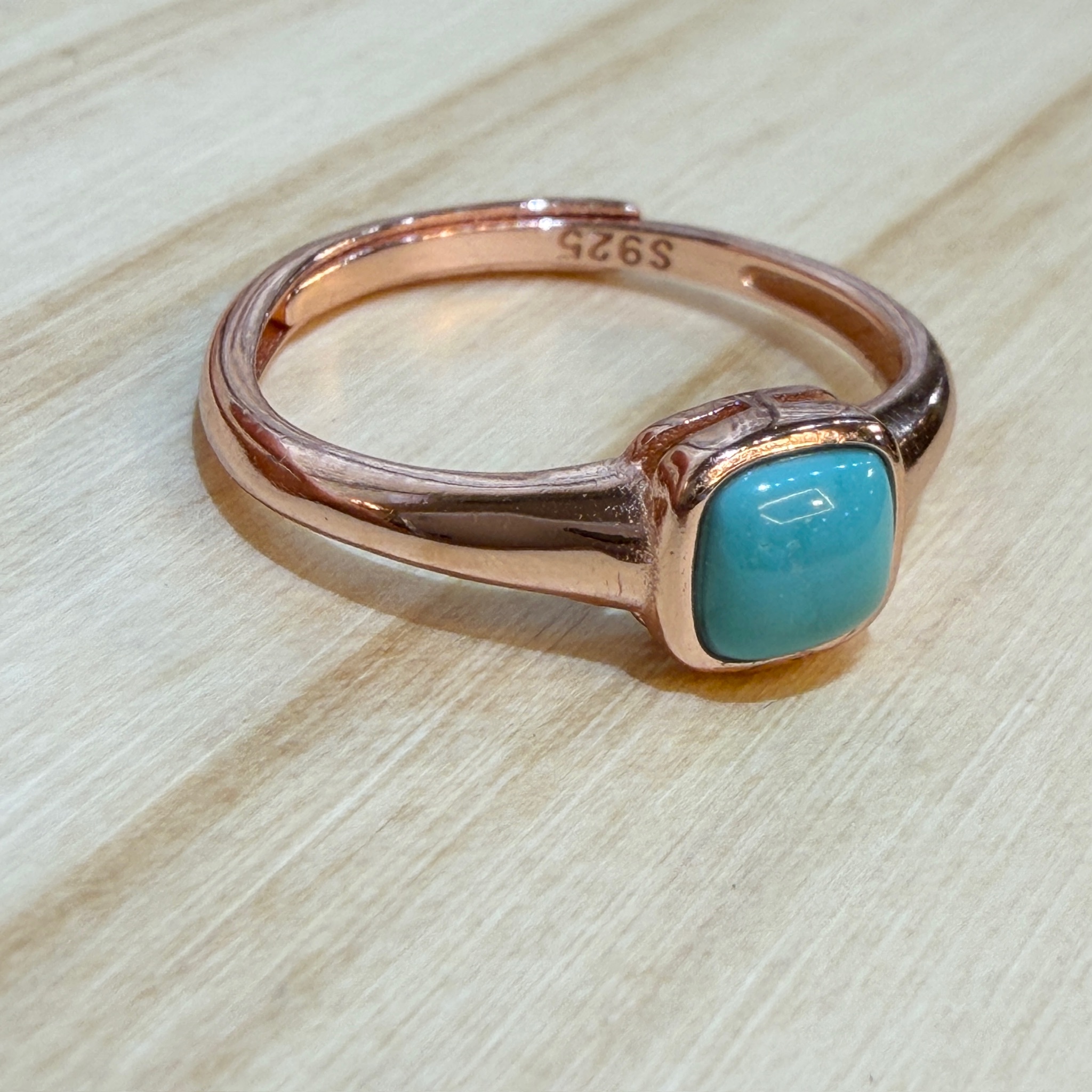 チャイナターコイズの魅力を、指先でさらりと楽しめるスクエアリング。
