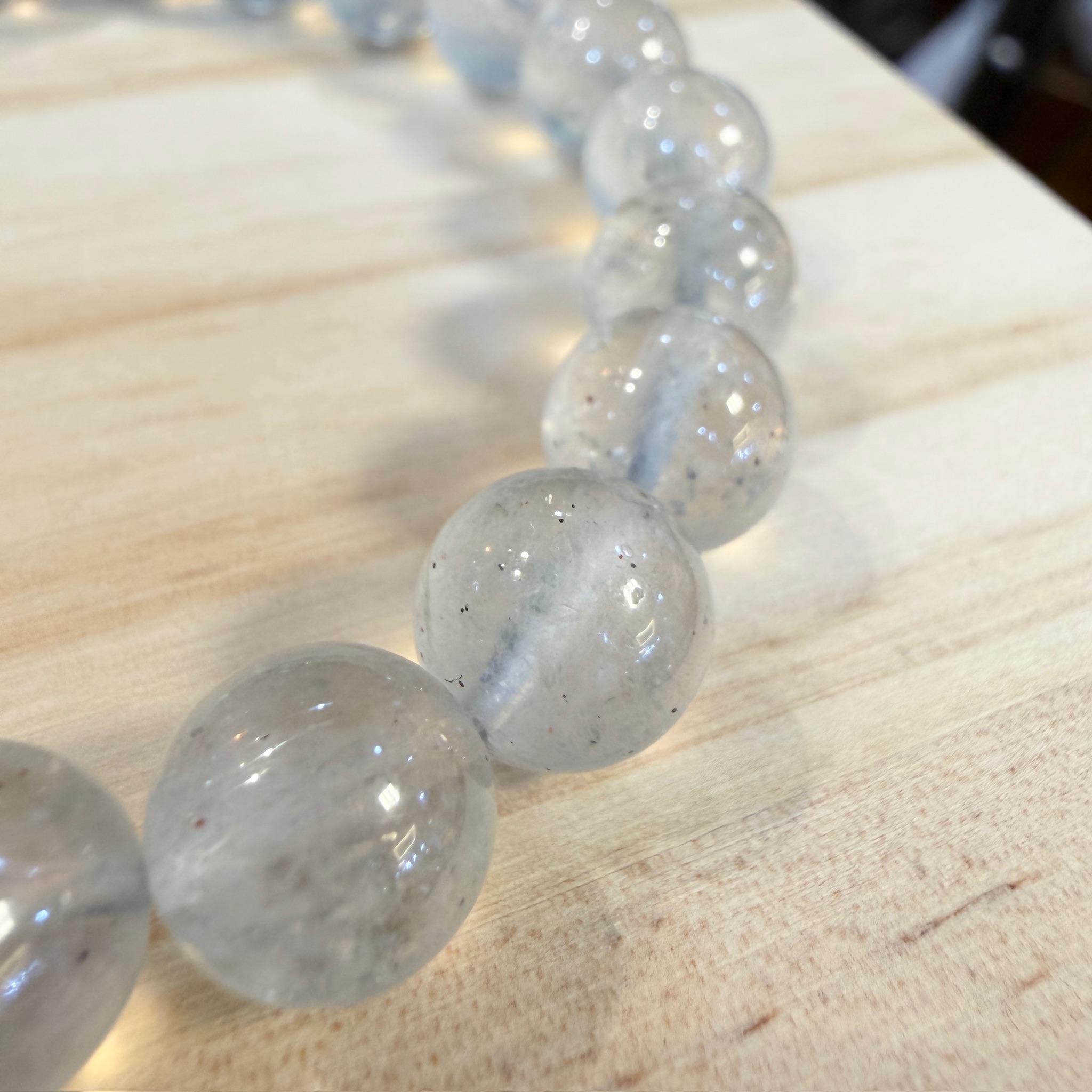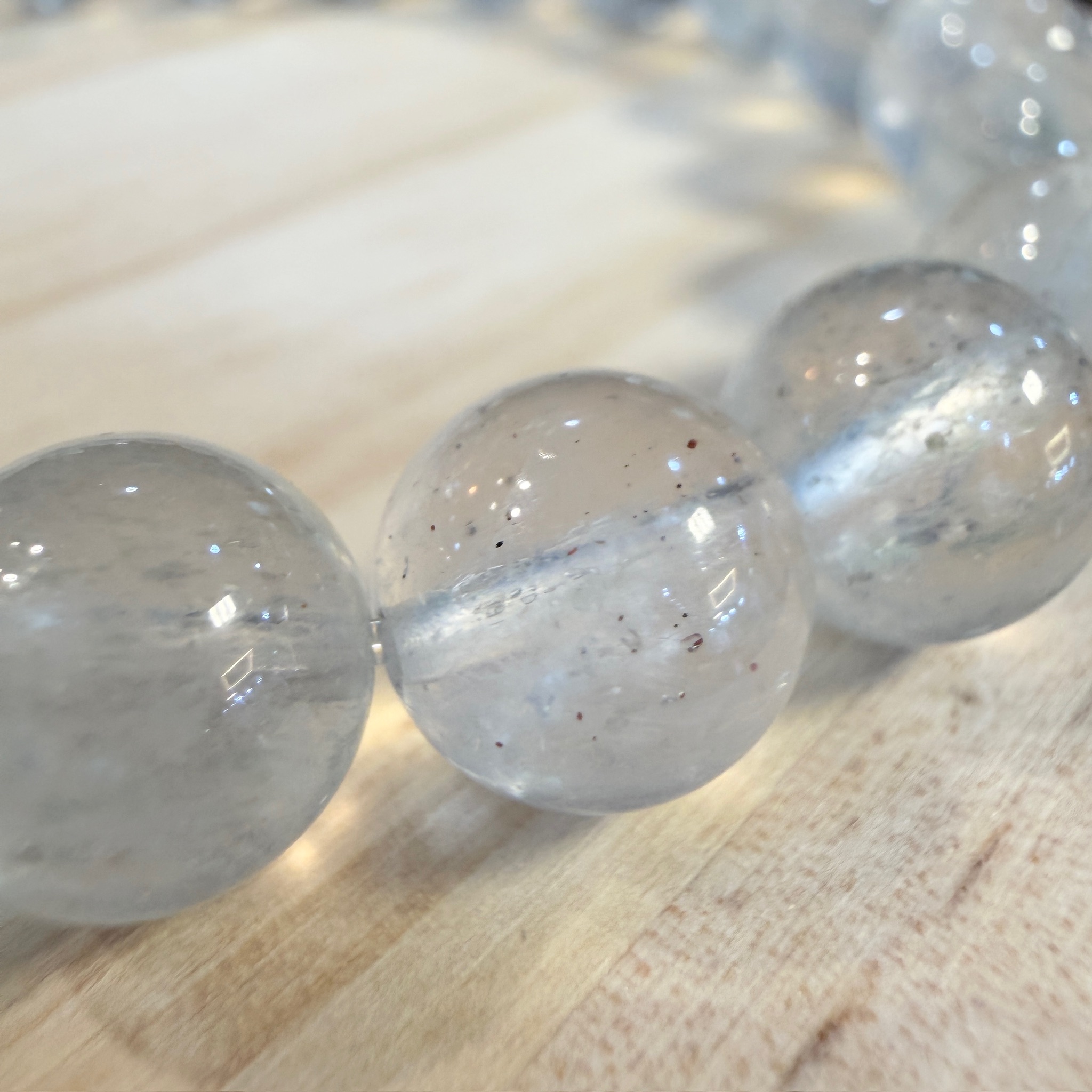透明感のある水晶質の中に、白い雲母(マイカ)がふんわりと舞うように内包されたホワイトストロベリーマイカ。